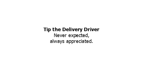 Many of our customers have asked for a way to tip our delivery crew. If you would like to tip on this purchase, please add the amount ($1 increments). Always appreciated, never expected!