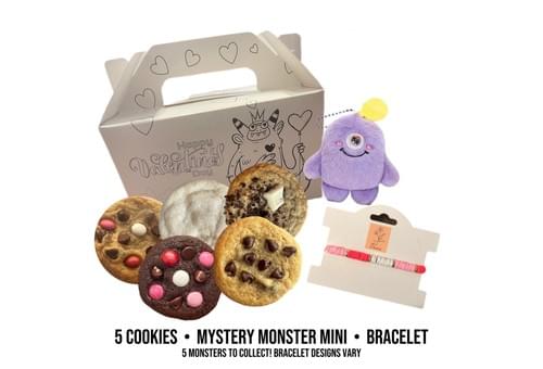 Our color your own box includes five made-from-scratch cookies, a bracelet from our partner Vana by Vanna, and a mini monster (collect all 5!). This is the perfect gift for Valentine's Day!